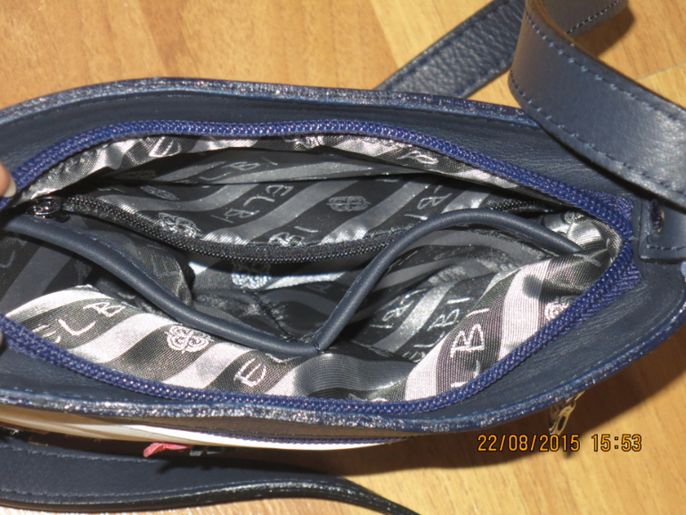 для мелочей, и карман на молнии, снаружи на задней стенке также карман