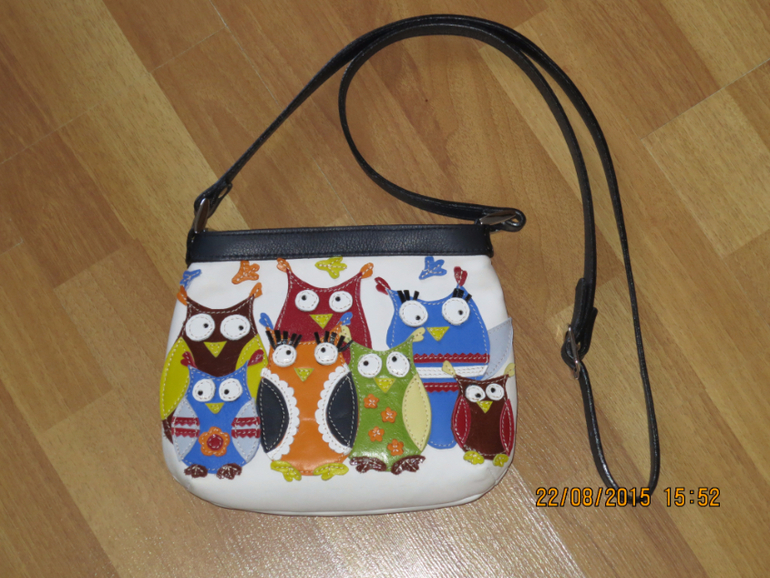 Бренды, приобретенные в сообществе ITALMODA!ПРИСТРОЙ по всем брендам!!!Сумочка ELBI мод.496, цвет белый/темно-синий, аппликация "Совы"