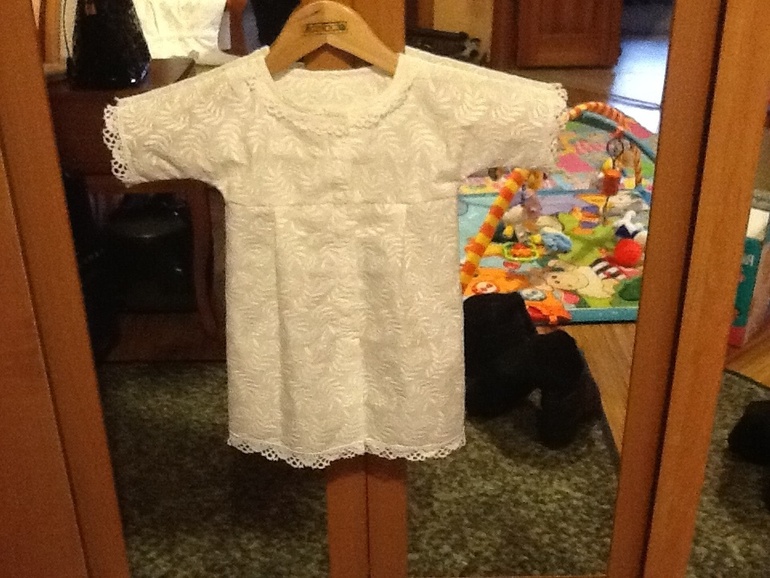 Крещение моей малявки состоялось неделю назад. Рубашечку шила сама (я по первому образованию портной))) осталась ткань и кружева.