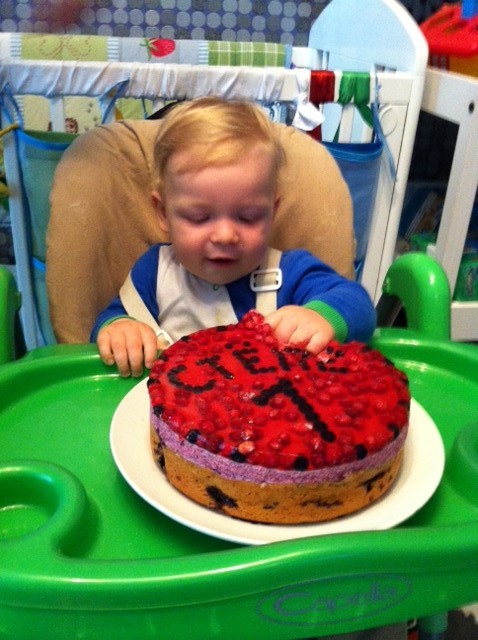 А на первый день рождения мама (я тобишь) сотворила Степке торрртик, который сын сразу и опробовал: