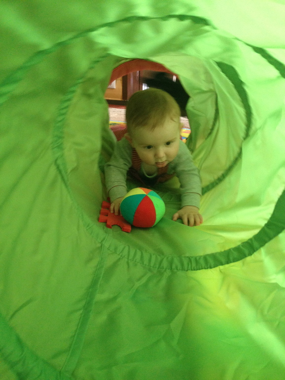 Приехал Максим совсем другим ребенком. Он все умеет, везде ползает, общается с нами, все облизывает и тянет в рот. Слава богу, уже не так падает, но все равно глаз да глаз. В 9 Макс весит 10354 и 76 см рост. Стоит у всех опор, ходит немного вдоль них, но бочком. Ходит прямо с ходулями, но недолго, потом дает ручку и ходим за ручки. Если устал стоять или ходить, садится или ползет. Ползает много. Я потихоньку этим пользуюсь и не несу его кушать, а зову его на кухню, и он приползает. Больше всего мне нравится, что он падает на попу, а так же мы научили его сползать с дивана и кровати.