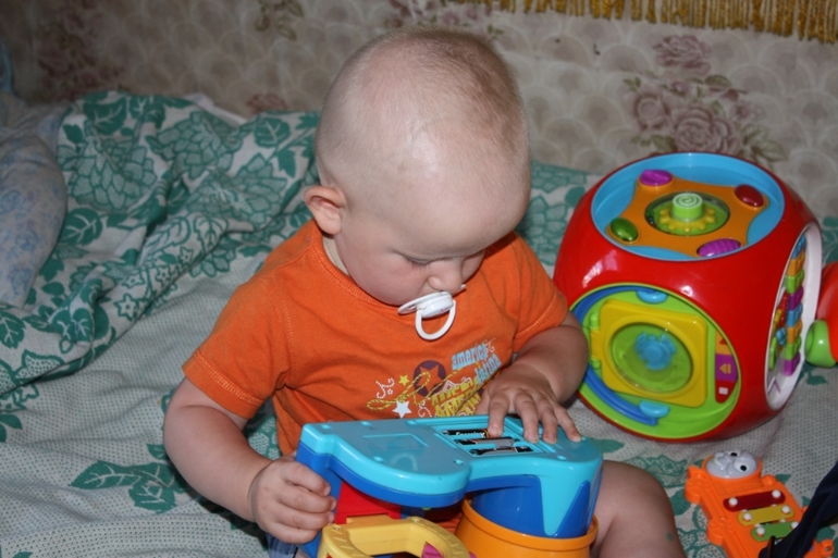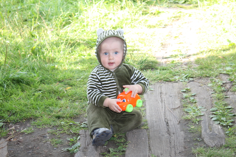 У Ваньки 10 зубов, 11 и 12 на подходе, весим мы 11.700, а рост 76( мерили с наклонённой головой ибо он смотрел куда это его поставили и поднимать напрочь отказался). Лето в деревне это сказка, дверь открыл и уже на улице, ни себя ни его собирать не надо, коляску на себе тащить не надо. Спал в коляске по 2-3 часа, на свежем воздухе. Здесь такое нереально. ( Балкона нет)