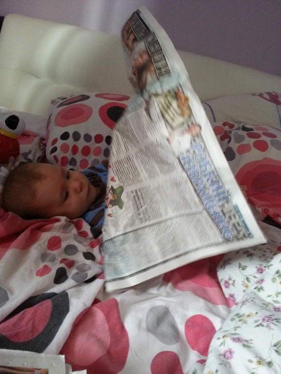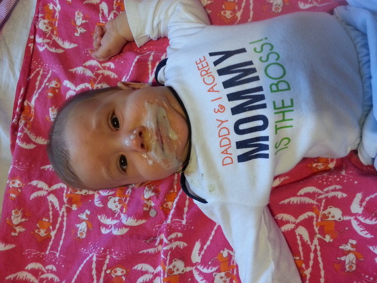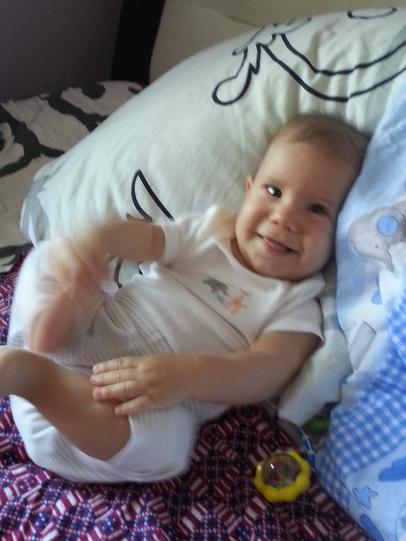а так все прекрасно, нам сегодня 6 мес, рост 72см, вес около 8кг, становится на четвереньки и раскачивается, пытается ползти, крутится как юла и ооочень активный!!!