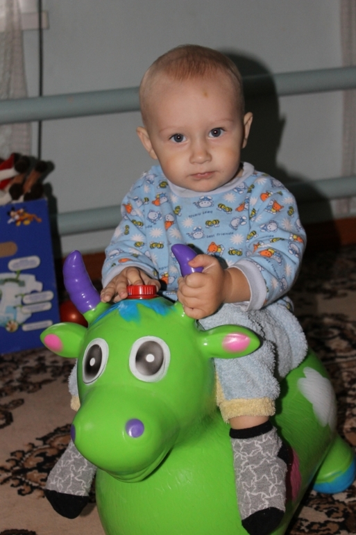 Клёвый мальчишка растёт!!!!!!! У меня Лёха тоже в синяках постоянно))) Вам огромного здоровья!!!! Корова прикольная)))
