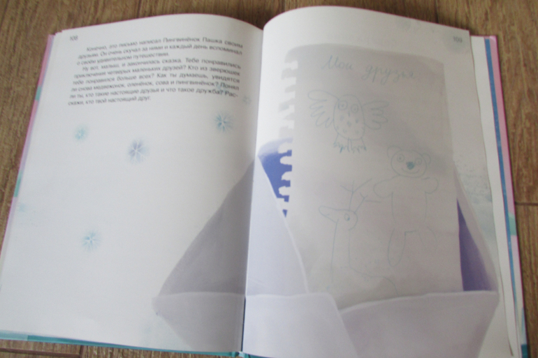 Эта книга о приключениях четверых малышей: Белого Медвежонка Андрейки, Полярной Совы Люси, Оленёнка Сени и Пингвинёнка Пашки. Все они хотят узнать, что такое дружба. С этой целью они отправляются к Большому Киту, а по пути с ними случаются разные приключения. Они помогают друг другу в беде, вместе радуются и грустят. И в конце пути герои понимают, что они стали настоящими друзьями и вместе им любые невзгоды нипочём! |