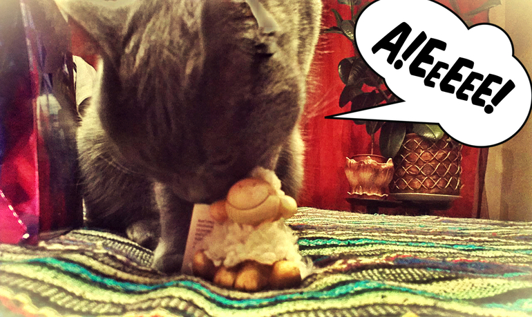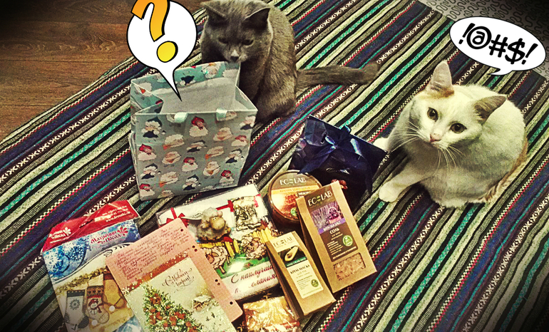 Не успела я все достать, как кошаки мои тоже заинтересовались подарками :)
