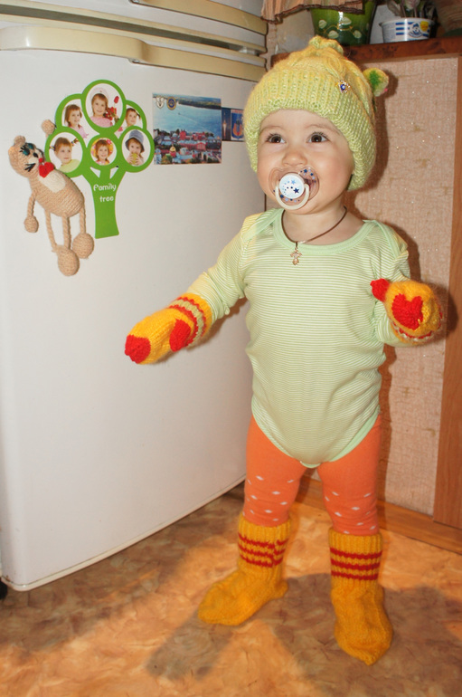 Чего там только не было! И замечательные теплые-претеплые шапочка с брошкой от сглаза, носочки и варежки