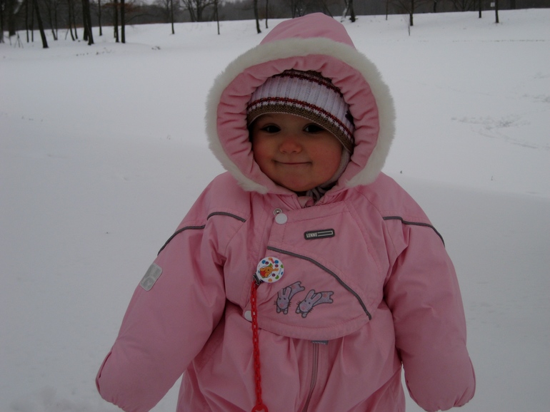 Просто наши фотки сегодняшние. Впервые вынула ее из коляски и поставила на снег.