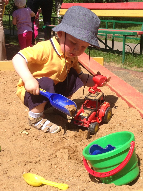 С детками тесного контакта пока нет. Вернее больше любит старших. Следит за ними, потом отдельно повторяет. Очень ревнует меня, когда я беру на руки малышей-грудничков. прям не разрешает и требует отдать)) Выделяет некоторых девочек) На площадке у нас туса. Это здорово). Но Макс не любит долго быть в одном месте. Любит ходить, исследовать. Часто за прогулку можем обойти 3-5 мест. Слава Богу, соглашается доехать на велике или коляске. Но долго не сидит ни в чем. Хотели на развивашки начать ходить в районе до болезней весной. Так мы дойти не можем)) Там надо минут 25 пешком и мимо гулятельных мест, требует выпустить его, при этом сам за ручку пока не особо ходит)) Все время отвлекается в сторону и увлекается, так что фиг оттащишь. А за руль с ним я боюсь. Так вот и не пошли пока никуда. Надеюсь, осенью куда-нить запишемся.
