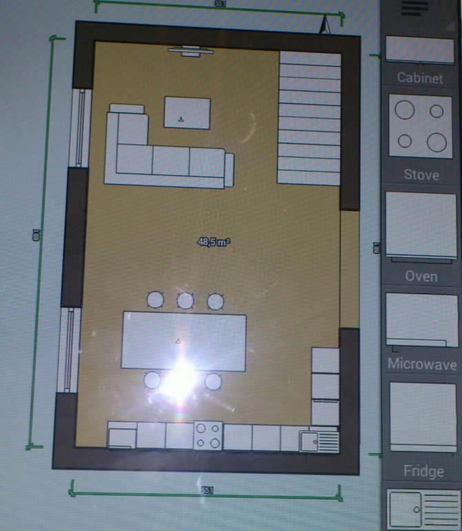 Спасибо) плиту просто поленилась передвинуть) суть в размере кухонного гарнитура и местоположении стола)