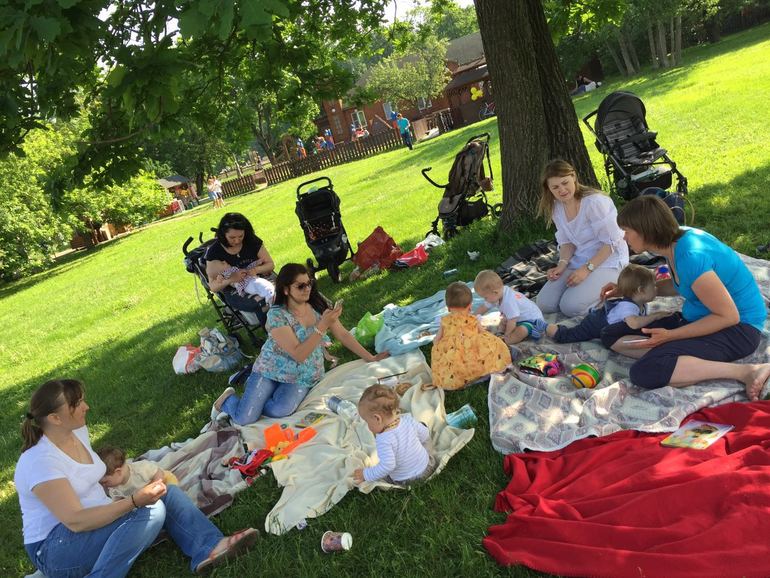 На встрече было 8 мамочек со своими крохами и я)) мне несказанно повезло, т.к. вся мамская и детская энергия досталась мне одной