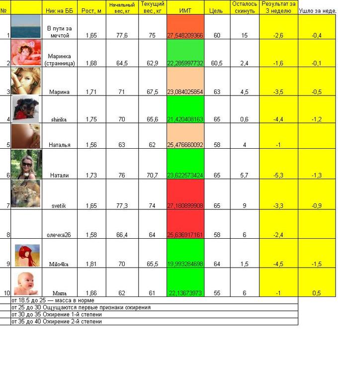 Худеем вместеСамый лучший результат - у Натали, и это при том, что она на ГВ. Умничка! Так держать!