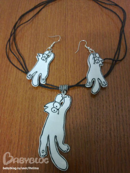 Hand made! Ручная работа!Simons cat))Полимерная глина,роспись акрилом,лак,металлическая фурнитура. 400р. Больше бижутерии в моей
