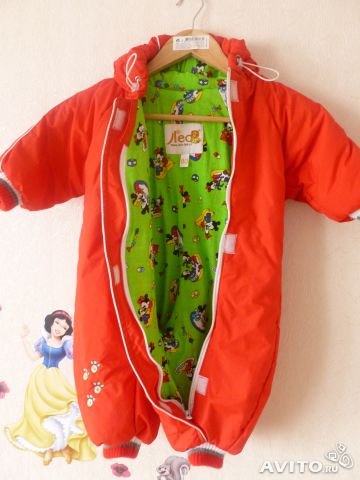 Продается теплый красный комбинезон с капюшоном на девочку, размер - 80см