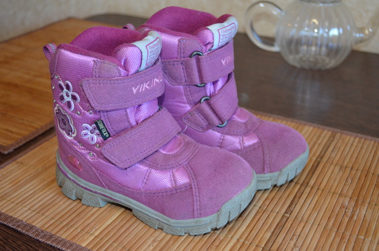 Зимние сапожки Viking. Дышащая мембрана Gore-Tex. Температурный режим от +5 до -30. Носили всю зиму без носка на одни колготки, нога всегда была теплая.