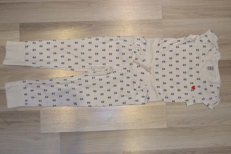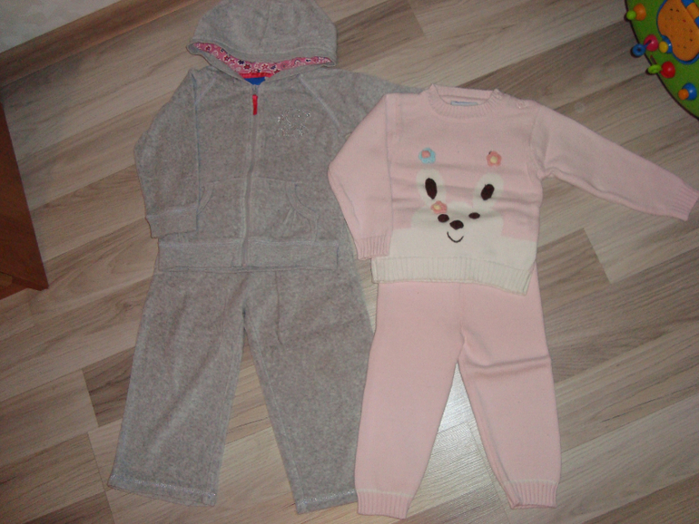 Кофта: длина 35, грудь 31, рукав от подмышки 23. Штаны: длина 52, шаговый шов 33, пояс 23.