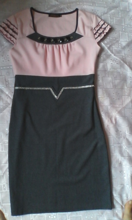 Платье трикотаж со стрейчем, р.46-48,красиво подчеркивает талию за счет вставки из страз, подойдет для девушек с формами)