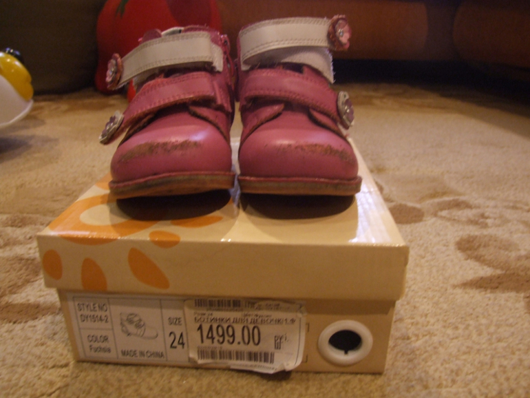 2. Демисезонные ботиночки Baby Go с супинатором, "каблуком Томаса". Липучки + молния. 24 размер. Стелька 14,5 см. Носили меньше месяца, но носы сбиты. 250 руб.