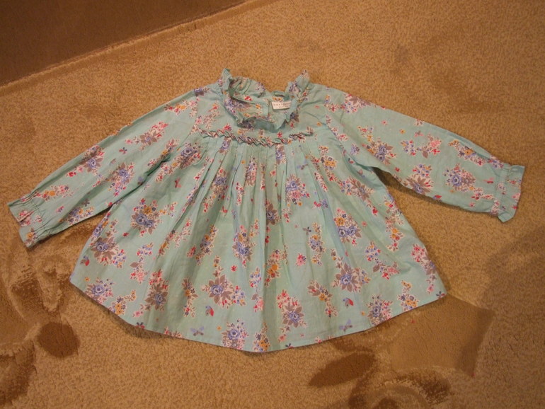 12. Блузка Next. Надели один раз, за лето переросли((( Размер 9-12 мес. Если и большемерит, то совсем капельку, я бы всё-таки сказала, что в размер. 200 руб.