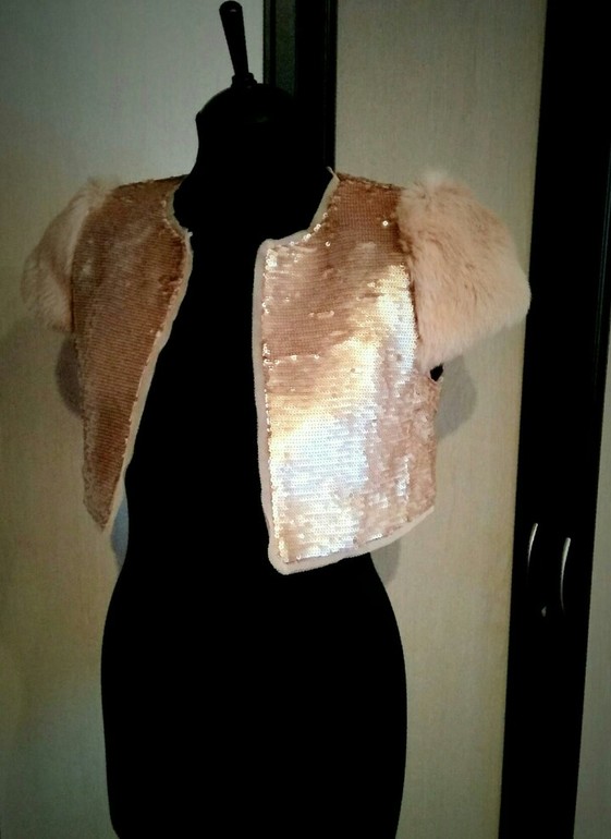 ПРОДАМ взрослую одежду1990 р. Жакет болеро BCBG Max Azria с натуральным мехом, расшитый пайетками. Уникальнейшая вещь! Подходит как для похода в театр, так и с самым дерзким стилем гранж!)) выгуливался всего дважды и оба раза на премьеры)) в идеальном состоянии! Новый ~150€ Размер S 42-44