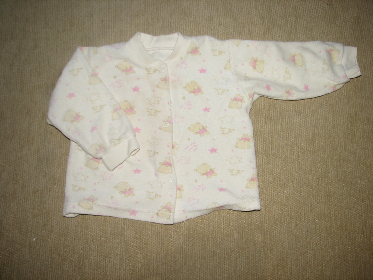 20. Кофточка-распашонка 3-9 мес, материал типа бархатного, бу 1 сезон. 50 руб.