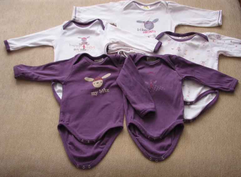 9. Боди с коротким рукавом хб, 5 шт (белого по центру нет), р.62-68, б.у. в хорошем состоянии. 250 руб за все 5 шт.