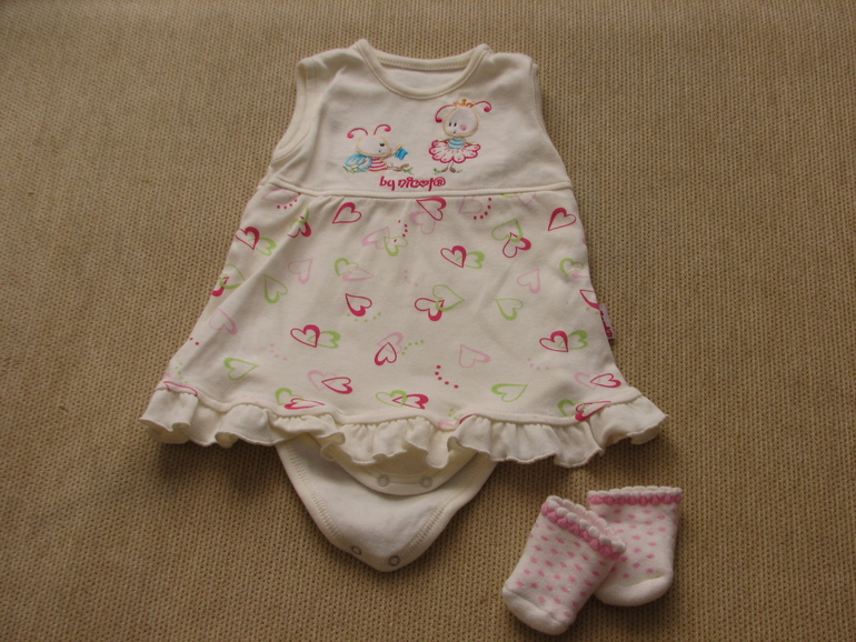 6. Боди-платьице + носочки, р. 68, одевали пару раз, состояние нового. 250 руб.