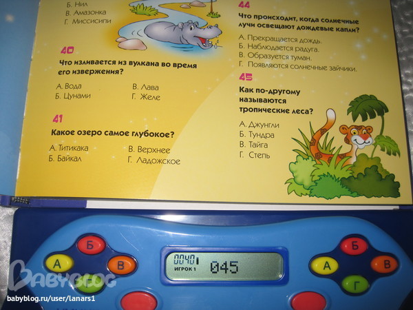 Книжку "Кто самый умный" я брала в подарок племяннику 7 лет. Сама пробывала отвечать на вопросы. Один раз ошиблась. В такой игровой форме, можно получить очень много интересной информации. Вопросы здесь разной тематики - история, животные, сказки, растения, космос и пр. Ну просто очень-очень интресная книга.