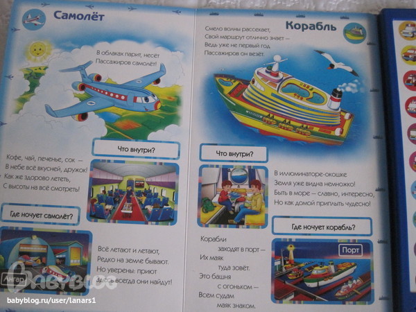 Идея книги мне нравится. Здесь показывается, что внутри машины и где она ночует. Каждой странице соответствует своя звуковая кнопка. Единственное, что мне не понравилось - это стихи. После стихов Барто, Михалкова, Чуковского и др. эти стихи какие-то корявые для моего восприятия. Но моим малышам я думаю будет интересно, потому что машины для них любимые игрушки. Остальные 3 книжки я брала в подарок. В книжке "Друзья на ферме" при нажатии на кнопку звучит стихотворение про животных на странице со звуками этих же животных . Стишки хорошие. я думаю, что подружкиному сыночку она понравится.