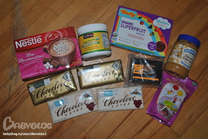 Арахисовое и кокосовое масла для Светланы, остальное (какао с зефиринками, шоколадки, мыло, мармеладки, леденцы) для Оксаны!!! (радуйся, наконец то твое приехало!!!)