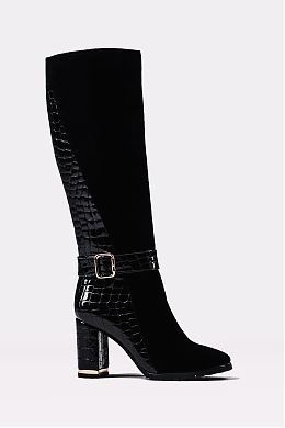 я за, нужны черные сапоги на евро мехе, желательно замша или комбинированные кожа с замшей, высокие, по колено на устойчивом каблуке, см 6 Если можно, напишите цены 642111 на евромехе и ботфорты 104722 демисезон