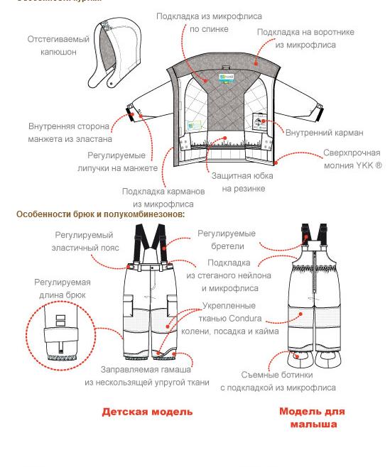 Верхнее покрытие Teflon от DuPont водонепроницаемость 5000 мм. Наполнитель Polyfill .Усиление в местах, подверженных наибольшим нагрузкам Cordura . Фурнитура YKK . Количество наполнителя 270 гр. в куртке , 240 гр. в брюках. В куртке подкладка из Micropolar Fleece ,дополнительная внутренняя юбка для защиты от ветра и снега, внутренний снегозащитный манжет из лайкры в рукавах, NEW!!! лямки рюкзачного типа на внутренней стороне куртки в районе проймы , отстегивающийся капюшон, регулировка брюк по талии и по длине, флисовая подкладка на задней части брюк , Температурный режим до — 30 градусов
