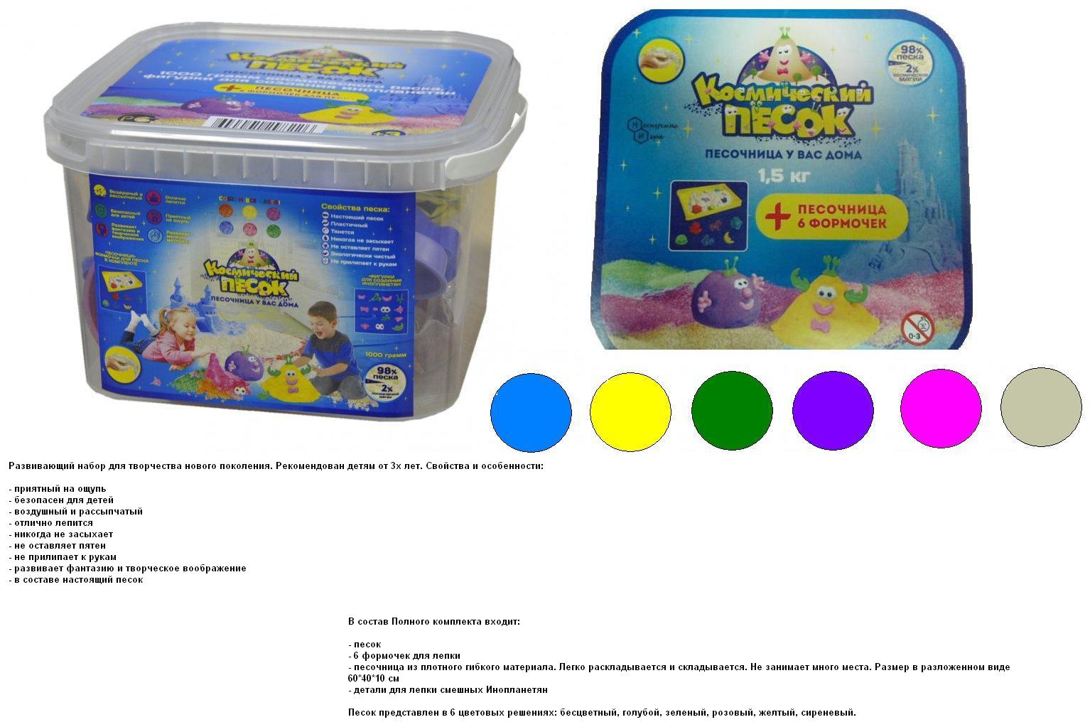 | Космический песок. Песочница+формочки 1,5 кг. "Классический" арт.К-150 |