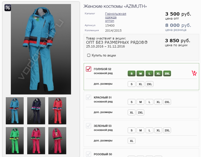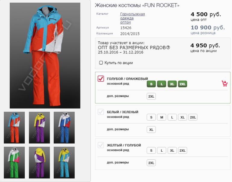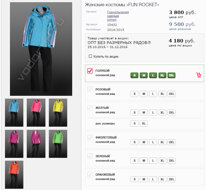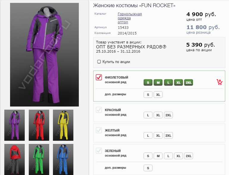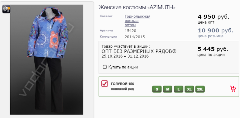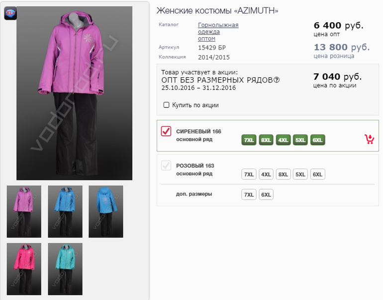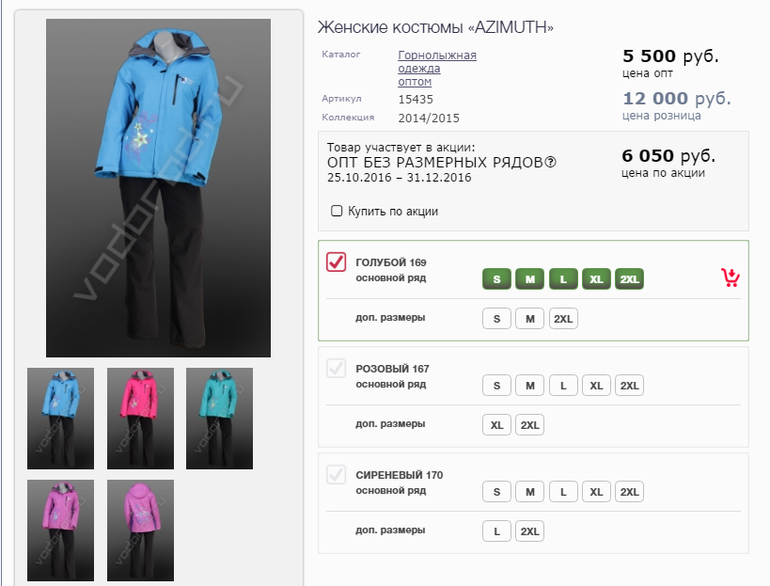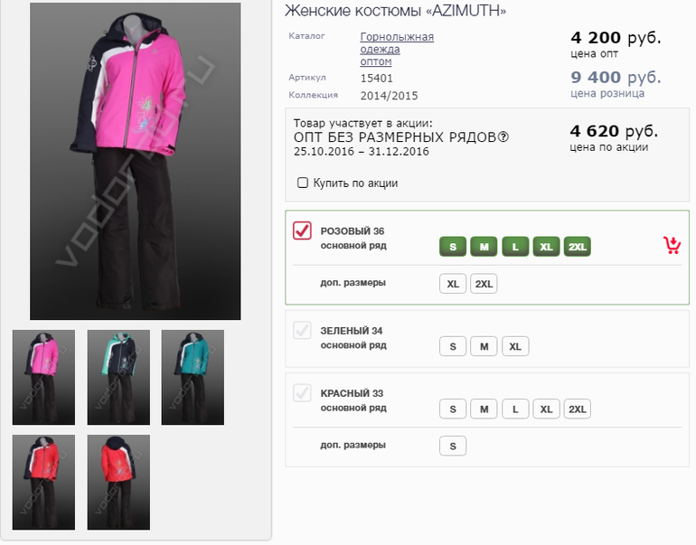 К оптовой цене с наценкой 10% можно приобрести костюмы без рядов.