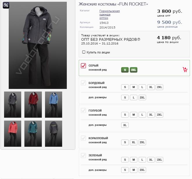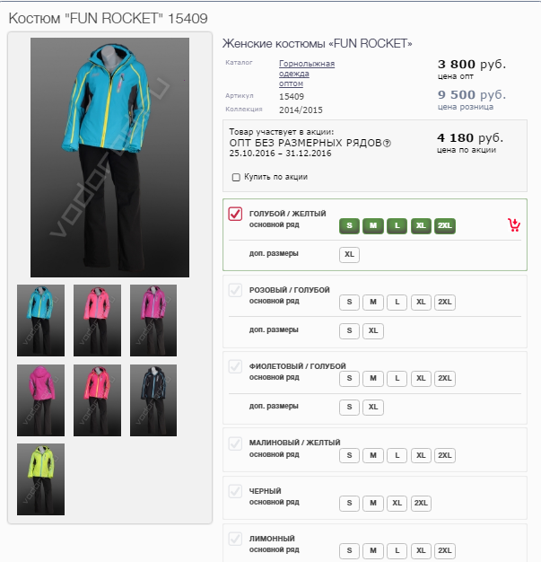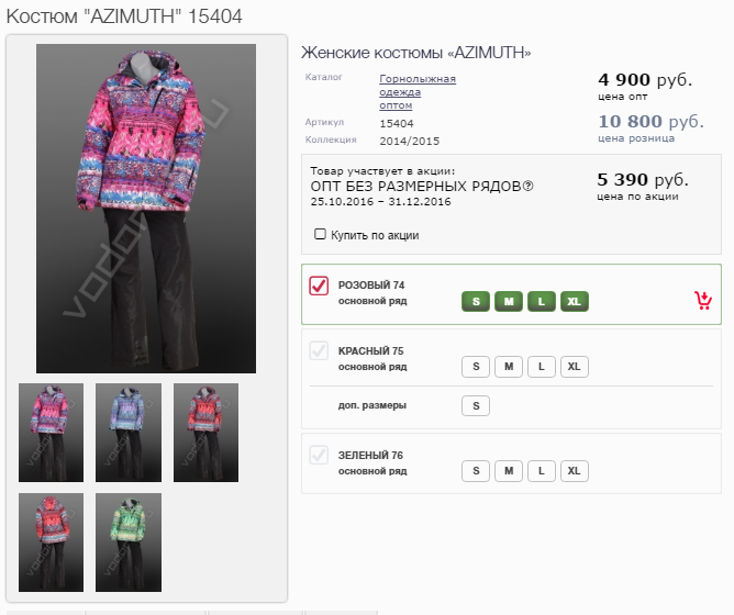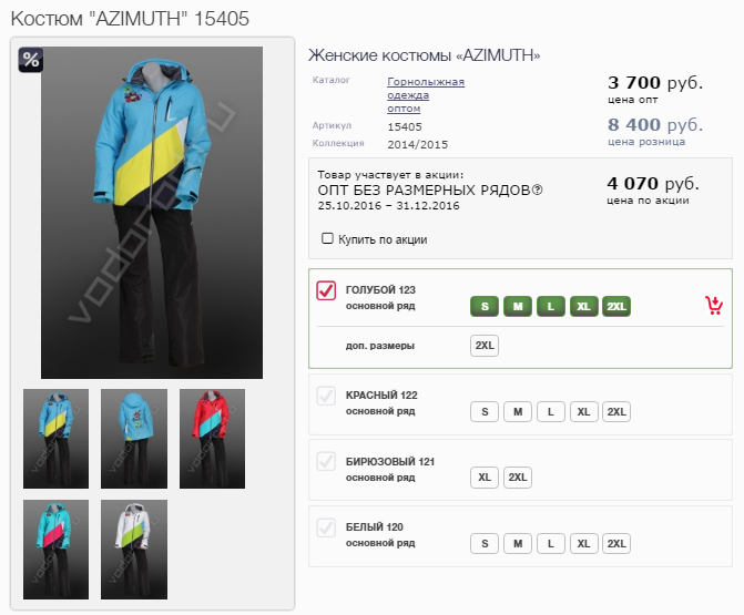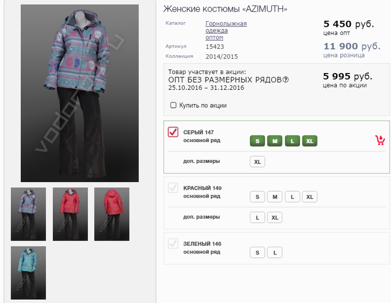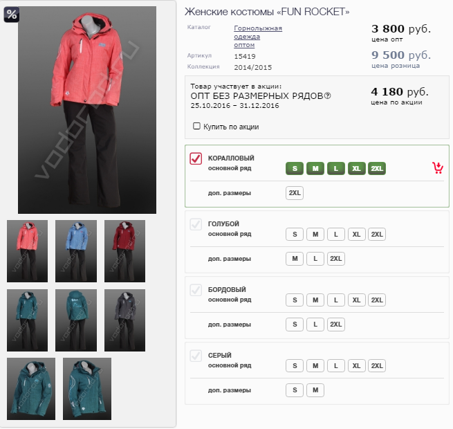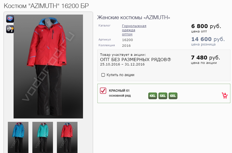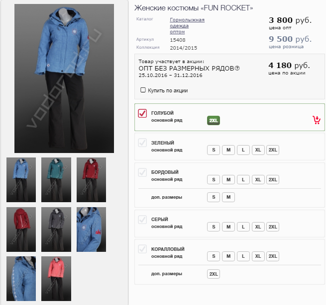 К оптовой цене с наценкой 10% можно приобрести костюмы без рядов.