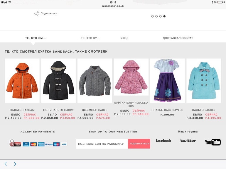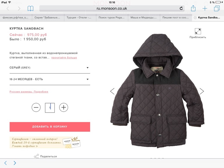 Детские магазиныДевочки, не могу не поделится. Знаю что многие тут заказывают одежду по интернету, особенно любят next. А я нашла еще один магазин из Великобритании с доставкой в Россию. Цены конечно там аховые, особенно на взрослую одежду, но на распродаже можно найти отличные вещи и не так дорого. Оплата такая же как в нексте, карточкой, правда доставка или почтой России за 190р( от 3900 бесплатная) или курьером, но курьером дорого, 1000р. Доставка где то 15-20 дней. Размеры разбирают очень быстро, особенно со скидкой. Я своему малышу заказа на осень курточку. А для девочек там такая красота, мммм.
