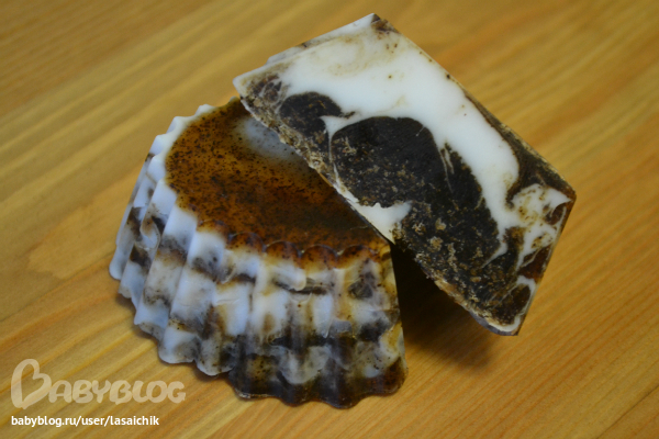 кофейное мыло-скраб с натуральным кофе, ароматом Капучино и с маслом Макадамии)