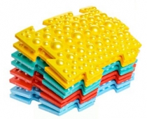 Уникальность данного ортопедического изделия подтверждена патентом Российской Федерации № 46181. От детского массажного коврика К-811 отличается только количеством модулей и их размером.