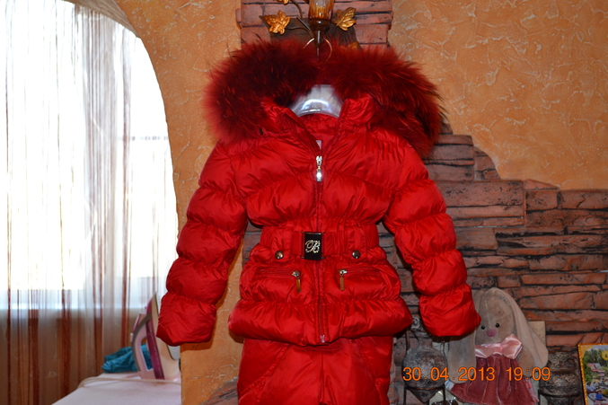 Зимний пуховый комплект с отделкой роскошным мехом енота.
