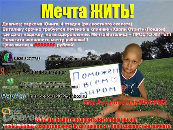 Мы очень надеемся на вашу помощь и поддержку ведь только с вами у Витали появится шанс ВЫЖИТЬ!!!