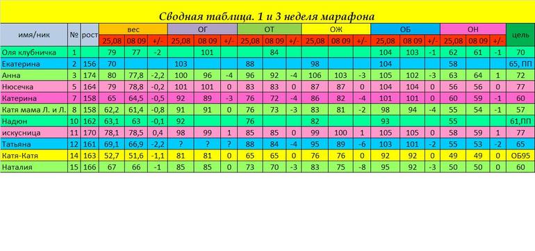 И вот наша табличка (смотрим успех 3 неделек).