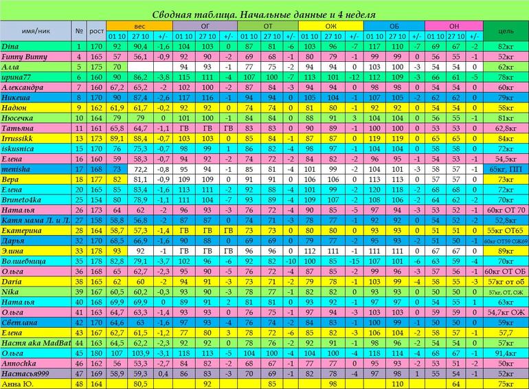 Всем привет!#1Вес 91.2 я в шоке! Думаю что весы врут, т.К. одежда стала реально свободней. На днях куплю новые.ОГ 103ОТ 80ОЖ 94ОБ 109ОН 67Пят, суб, вс 10-10-10