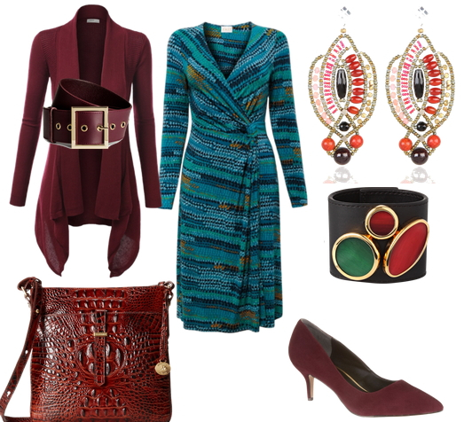Как обычно во многих комплектах вы видите большое кол-во вертикальных линий- это и фалды кардиганов\блейзеров, так и принты. Прошу обратить внимание на пояса,которыми женщины с таким типом фигуры вообще не пользуются. Пояса располагаются несколько выше линии талии, такой принцип хорошо работает и на беременных животиках. Этот прием обусловлен тем,что как раз у женщин с таким типом фигуры, самое узкое место тела,находится не на талии, а чуть выше. И если мы поясом обозначаем его, то как раз срабатывает принцип уменьшения объемов,о нем я говорила тут Тот же прием идет на зеленом платья. Думаю, про платья с запахом уже даже нет смысла говорить, это итак все знают