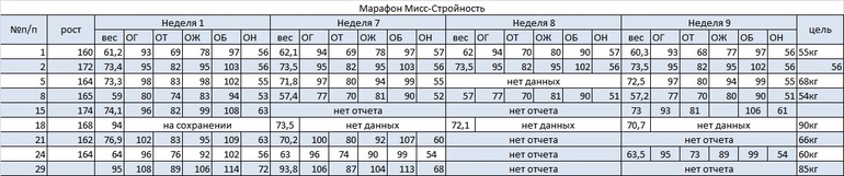 Итоги марафона "стройность к лету".
