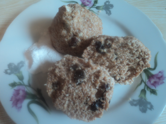 .Приятного аппетита)Дочь ест с сахарной пудрой(папа приучил),а мне и так сладко за счет изюма.