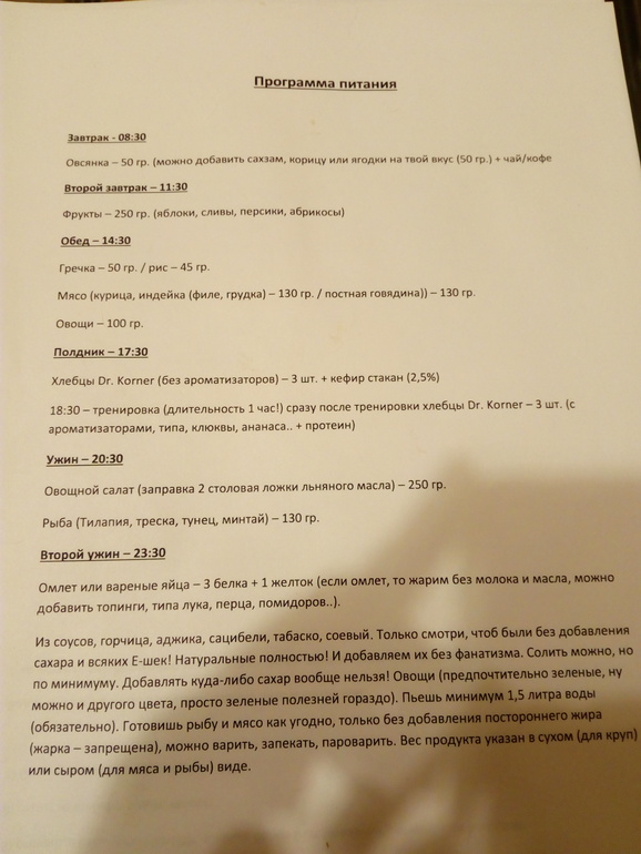 вот так выглядит программа питания. Порции получаются просто огромные)