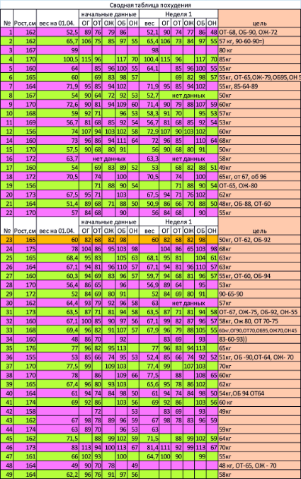 Девочки, прежде чем написать отчетик сегодня, не забудьте указать свой номер, который я вам присвоила, я данные в табличку занесу. Прошлые данные в таблице ниже, ищите напротив своего номера.