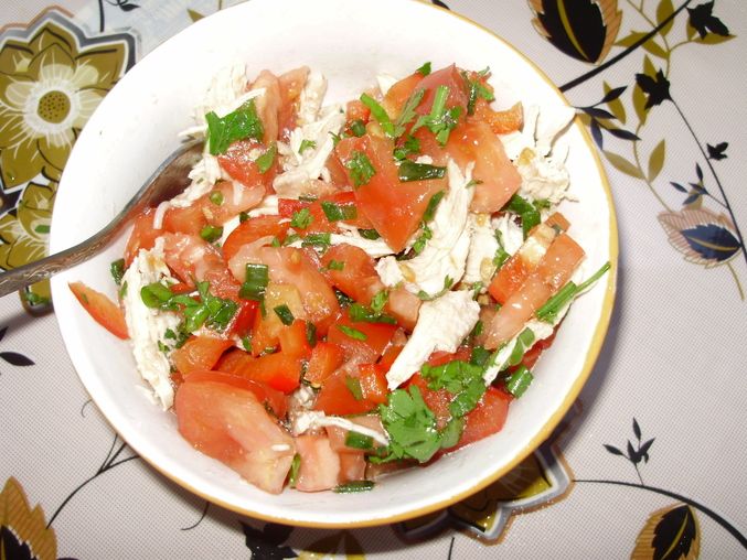 такой он вкусный и легкий)))) а я его еще на минуту поставила в микроволновку, получился теплый салат, так еще вкусней)))