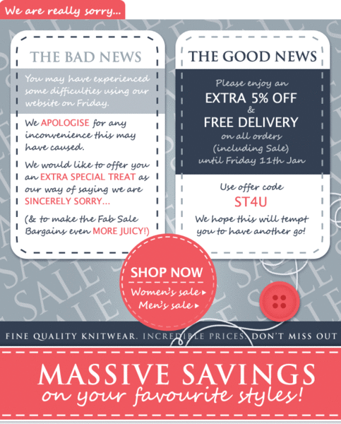 Девочки,кто хотел заказать в Wool Overs,но не проходила скидка,то вот магазин приносит свои извинения...
