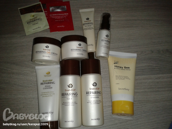 Наши хвастикиТак как у сестры закончилась вся косметика она решила, что хочет попробовать что-то новое и попросила меня поискать ей наборы косметики + ей нужна была маска и скраб, крем для рук и все обязательно должно быть из слизи улитки)))) Так что вся послыка была одна большая улитка)))